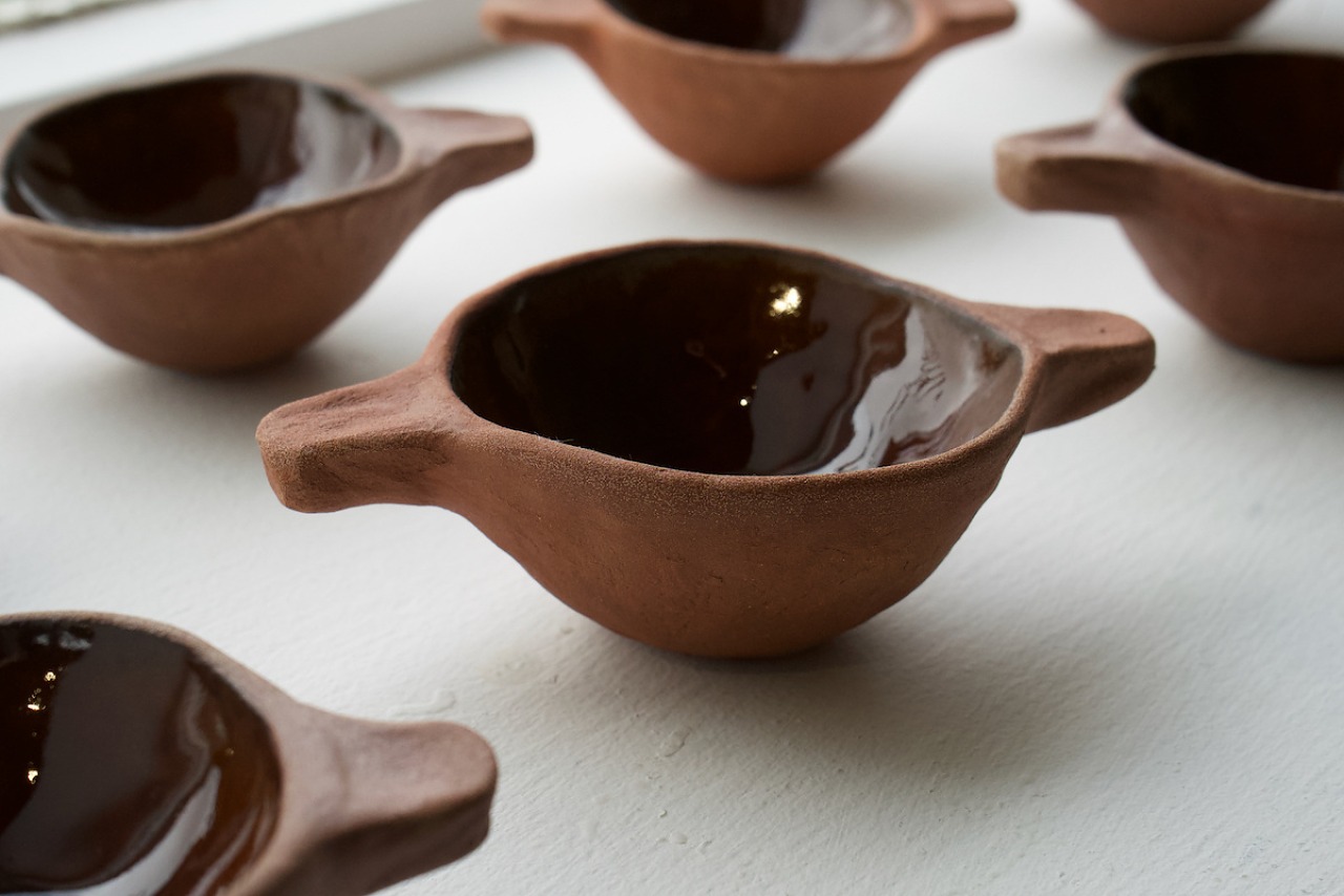 "My research-based practice excavates traces of material culture and social history by journeying into the biographies of the land. Acts of collecting and re-distributing are led by an urge to discover my surroundings. The material of clay provides the path into the landscape and what it holds. My practice spans sculpture, drawing, lmmaking, photography and painting. I intend to delve into the stories that certain places hold; within their communities and their long histories, and within the land itself, its formation. These stories are discovered through archaeology, heritage and geology. The sourcing of the materials that form the works, the physical journeys involved in this process are key to my practice. My relationship to clay has come from a personal afnity to the material and to craft. My interest in clay is anchored in its use as both an expressive and functional material. My relationship to this material has grown to allow an understanding of connection between people and their land, forming an expression of the earth that supports us as being our inheritance and so our foundation, our beginning and our end."